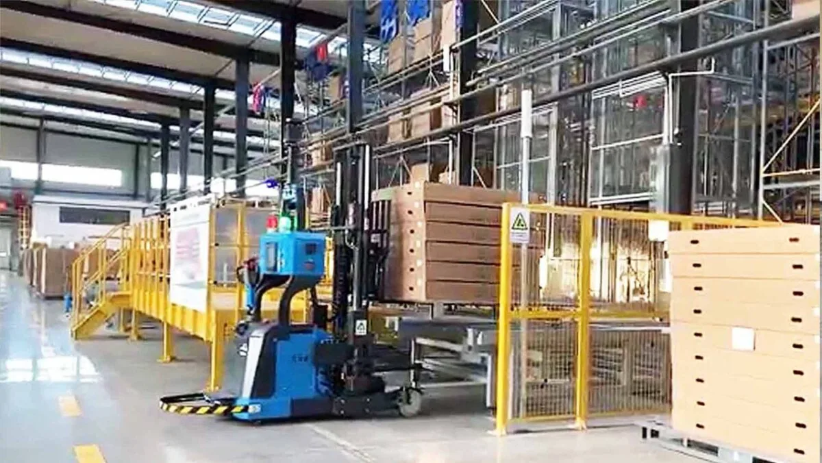 项目一期引入了 4 台无人叉车,作为物料运输的核心工具。无人叉车具备高度的自动化和智能化,能够精准地完成物料的搬运任务。同时,配套导入了 AGVS(调度系统)和 WCS(仓库控制系统)。AGVS 负责对无人叉车进行全局调度,合理安排其运行路径和任务分配,确保叉车高效协同工作;WCS 则对整个仓库的作业流程进行控制和管理,实现仓库资源的优化配置。