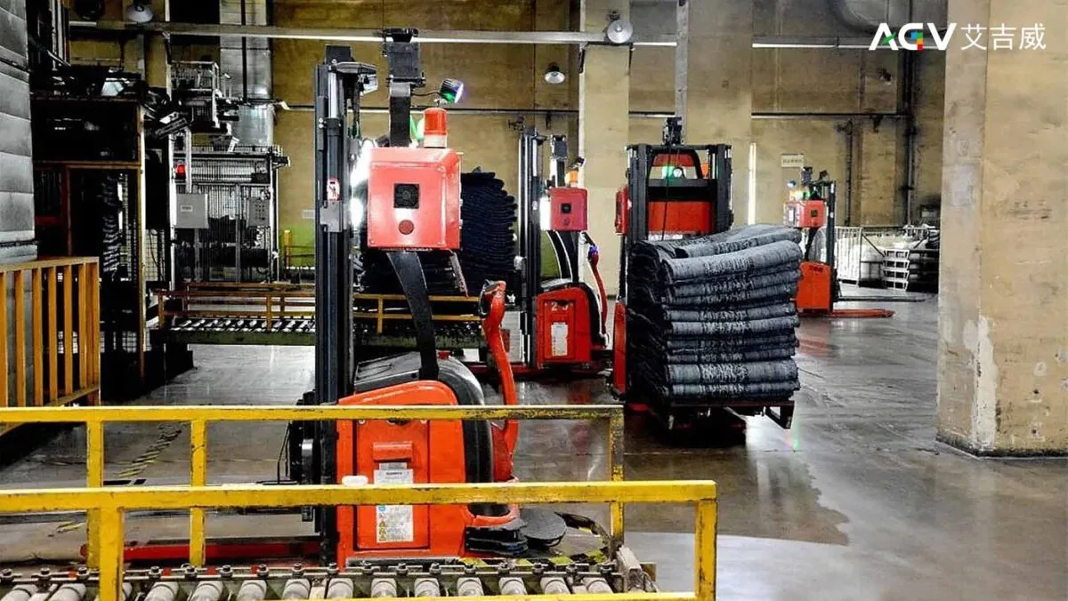艾吉威通过53台激光SLAM无人叉车实现密炼车间内母练胶、终练胶,生胶、小粉料的自动化流转;系统层面,以AGVS调度系统为实施主体,打通MES,WMS,RFID等系统的数据链,实现整个生产物流信息闭环和以及人员和设备的可视化管理。