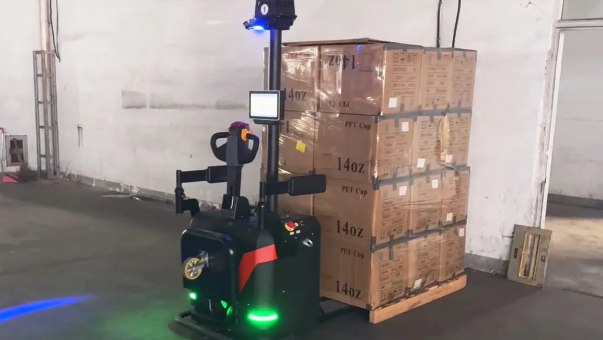 2、由于货物重量较轻(300kg)且两托高度过高,为防止无人叉车因急停急启导致货物倾倒发生,艾吉威采用自研第四代艾运MCU控制器,具有稳定性高、车辆控制更精准、抗干扰性强等优势。