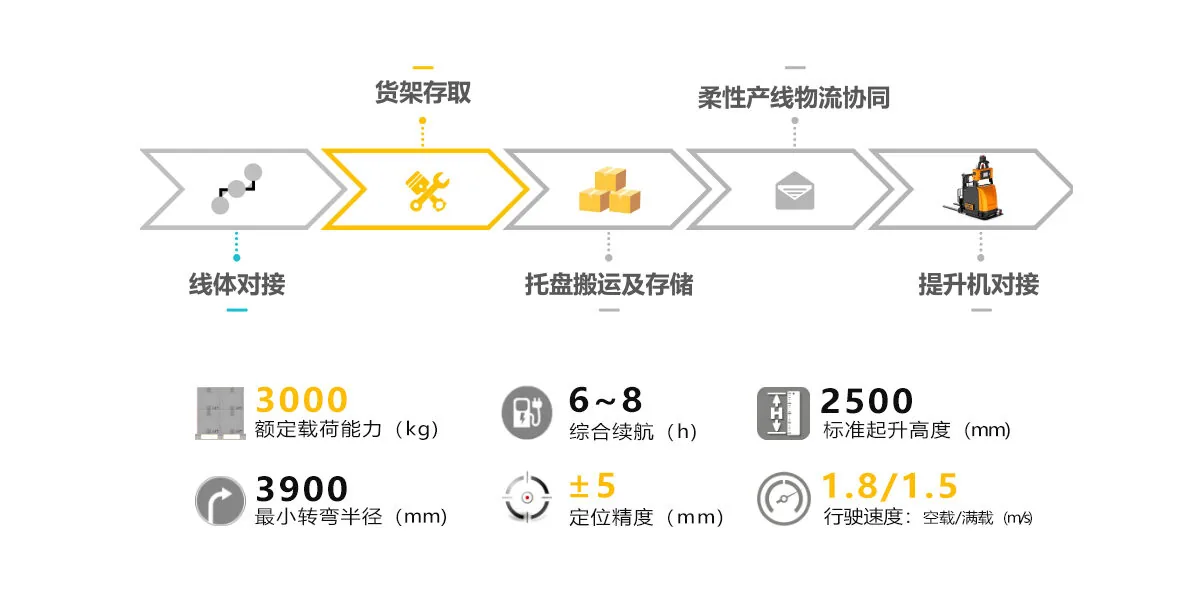 The M30C counterbalanced stacker AGV, featuring laser SLAM navigation, is specifically designed for heavy material automated handling and stacking in industrial settings. It is compatible with double-sided pallets, has a large load capacity, lifting function, and high precision. It is suitable for use in scenarios such as material handling, line connection, and high-rise warehouse connection in industries like photovoltaic, mechanical manufacturing, precision manufacturing, textiles, and food.
