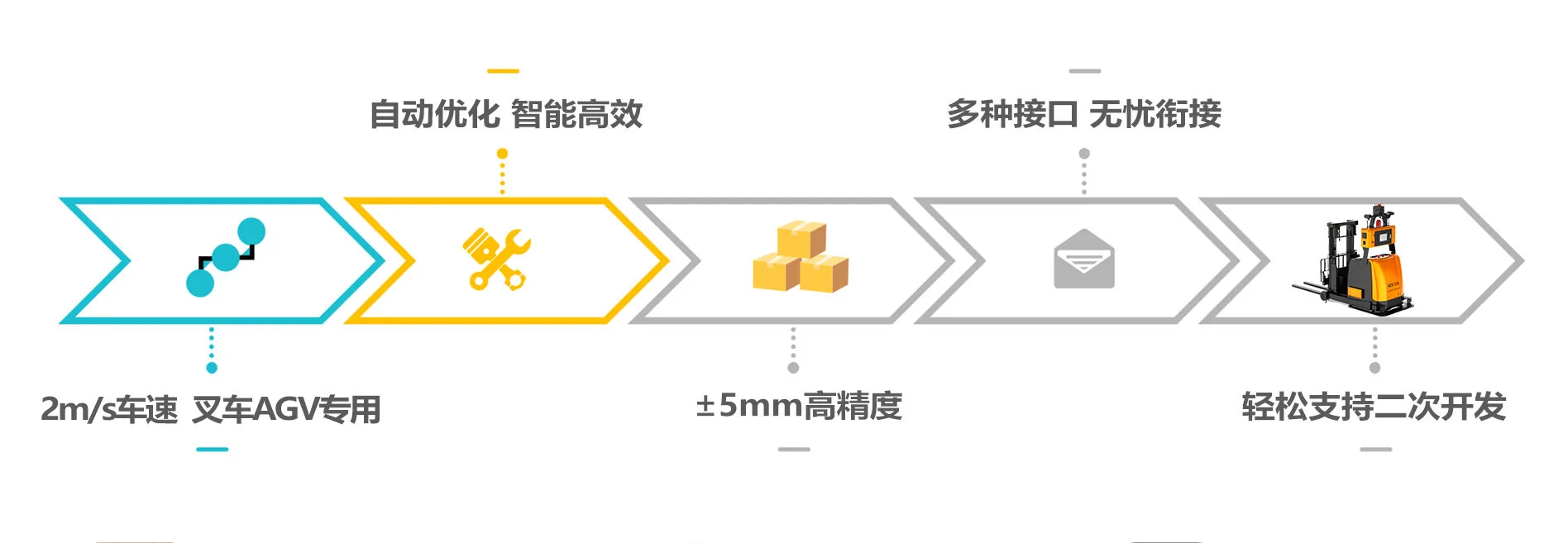 MCU核心控制器即自研第四代通用型艾运 MCU 控制器,是机器人的 “神经末梢”。它适配多种运动模型,支持多款叉车和底盘AGV车型。自带丰富通讯接口,集成多种导航算法,能实现视觉避绕障,还可精准控制车体在动态场景下急停急启、加减速度与运动方向,为机器人稳定运行与任务执行筑牢根基。